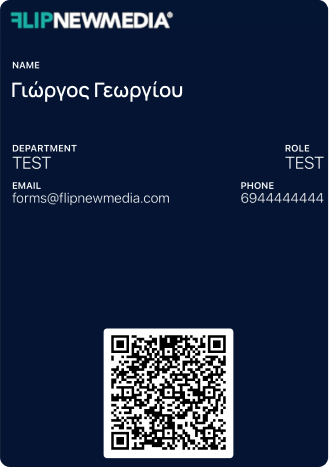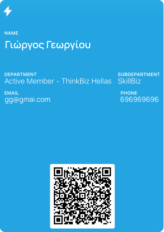 Κάθε συνεργάτης διαθέτει τη δική του business card στο κινητό, πάντα ενημερωμένη και έτοιμη να κοινοποιηθεί με ένα tap.